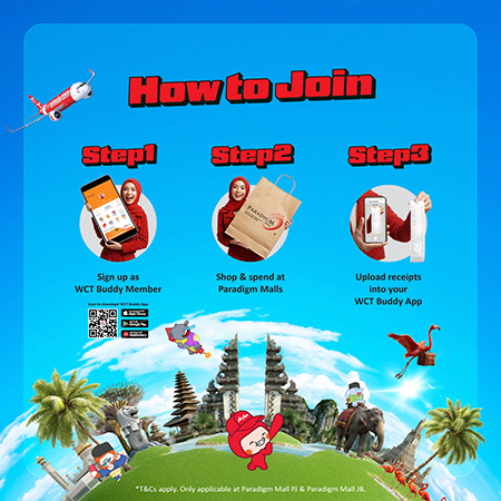 - To participate, each eligible member must spend and upload their receipts on the same day of purchase via the WCT Buddy App at any tenants including Paradigm Mall Petaling Jaya and Paradigm Mall Johor Bahru during the Campaign Period.